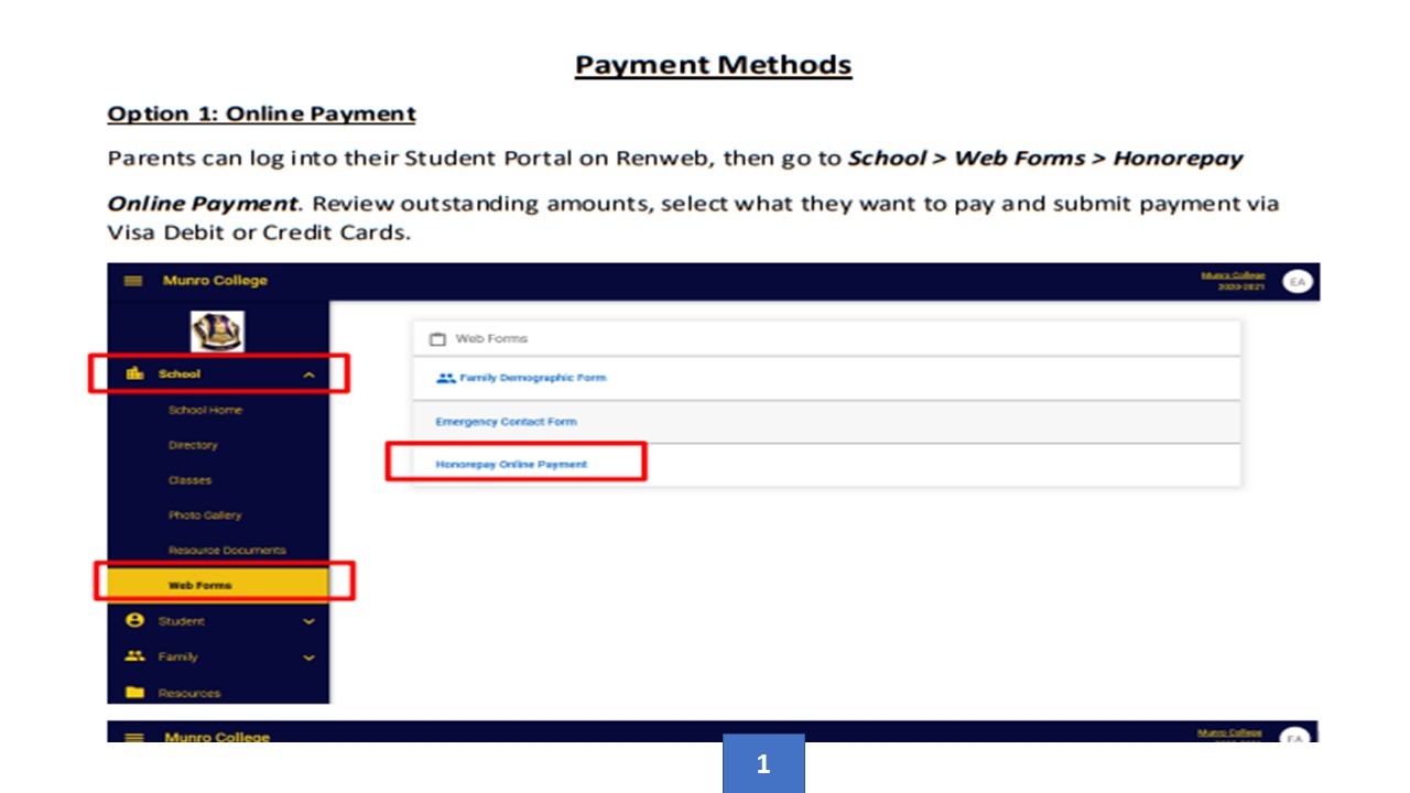 Dear Parents/Guardians, Please see below for added guidelines for the payment of school fees online, using the Honorepay system via Renweb. Kindly note that an account must be created on the Family Portal on Renweb first.(See the first …